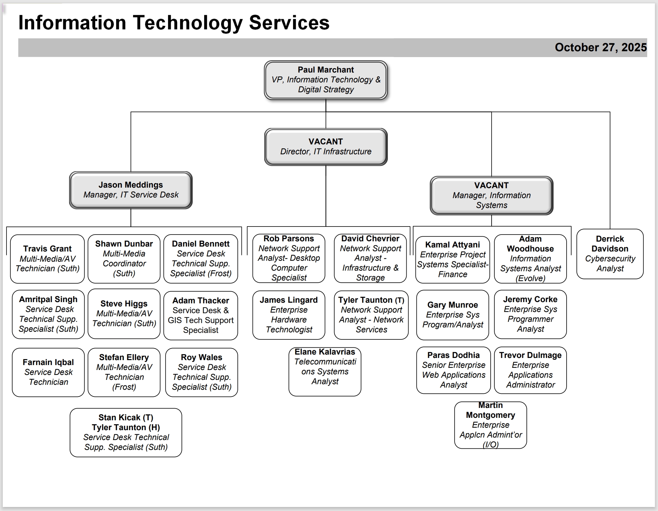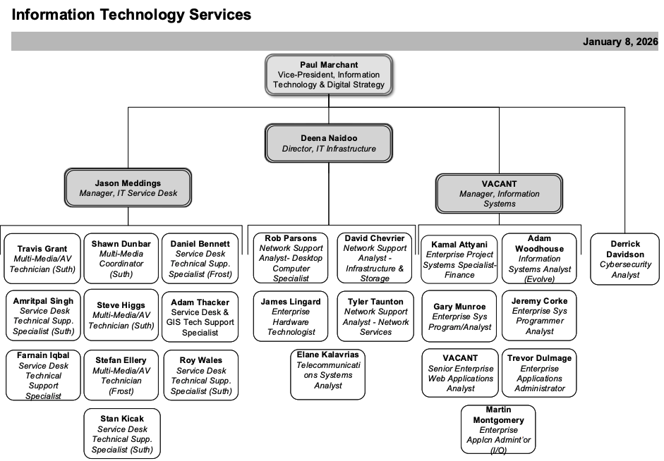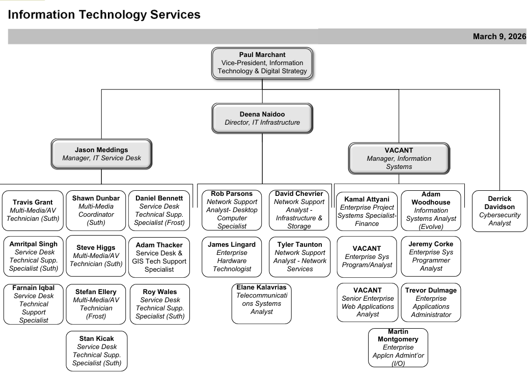 Paul Marchant was appointed Vice President of Information Technology and Digital Strategy in July 2024. Paul is responsible for leading the Information Technology Services (ITS) department and advancing the College’s digital & technology strategy as part of a new Technology and Digitization Transition Plan.