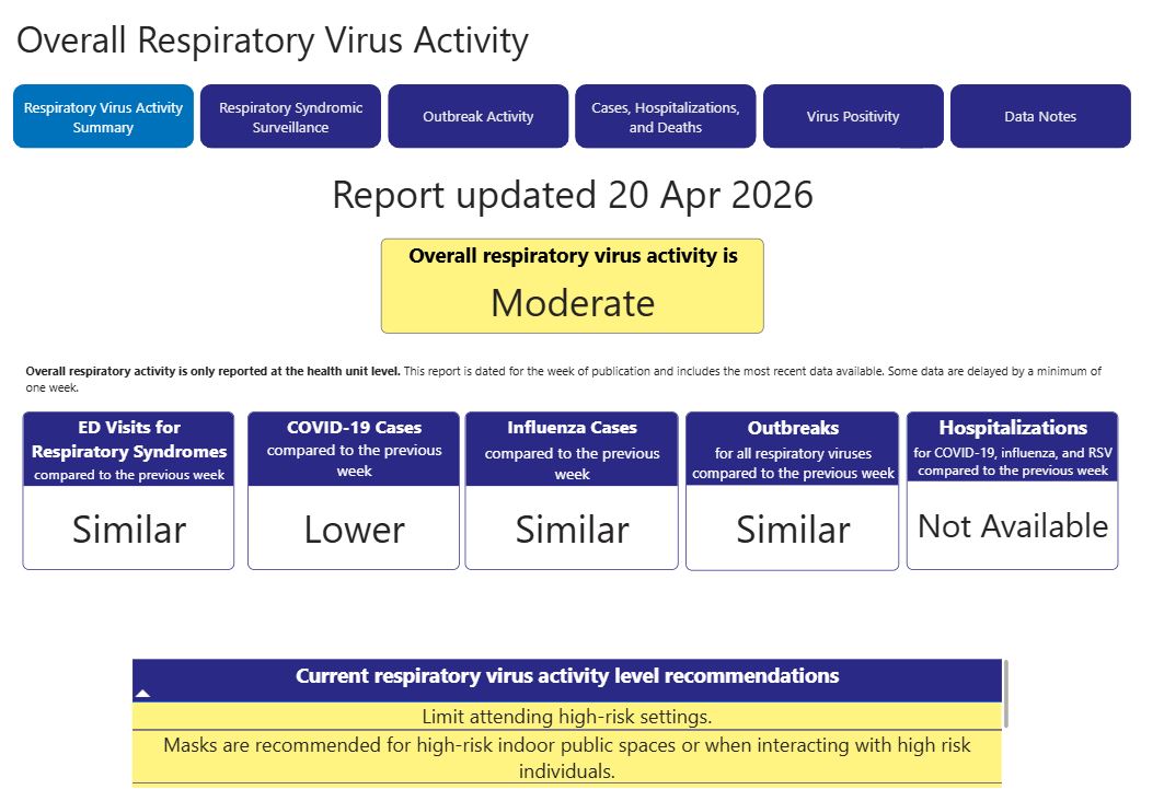Respiratory Infection Dashboards *UPDATED* April 22, 2026 Lakelands Public Health provides public health programs and services to residents in the County of Haliburton, City of Kawartha Lakes, City and County of Peterborough and Northumberland County.