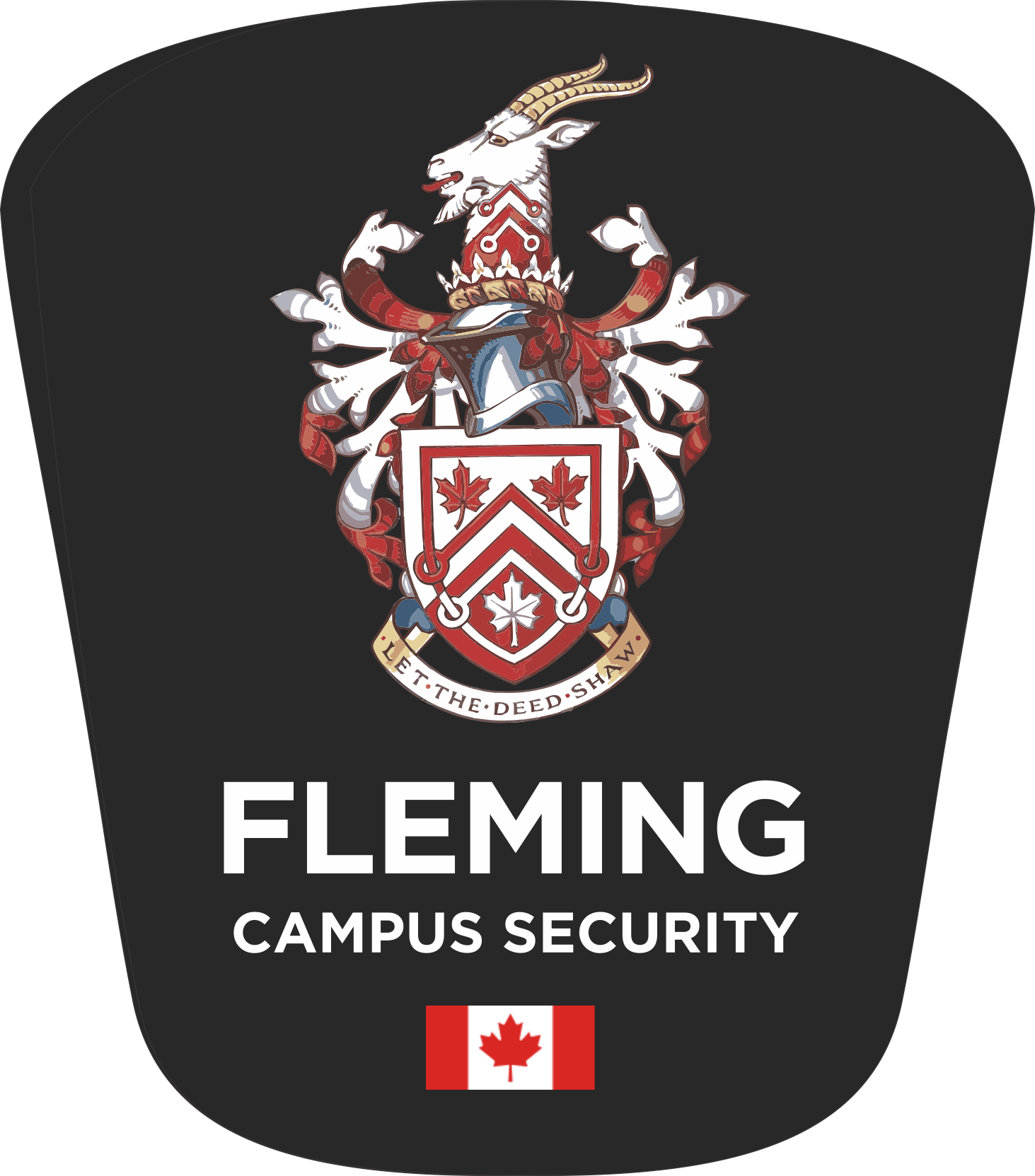 Select Campus Security Administrators that are Fleming College employees wear a uniform. Campus Security Administration uniforms reflect Fleming College’s brand standard and College heraldry. From the top down, this uniform consists of: